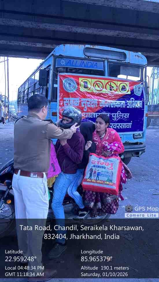 Saraikela News: सड़क सुरक्षा को लेकर सरायकेला में जागरूकता अभियान, बिना हेलमेट चालकों को दी गई सख्त हिदायत