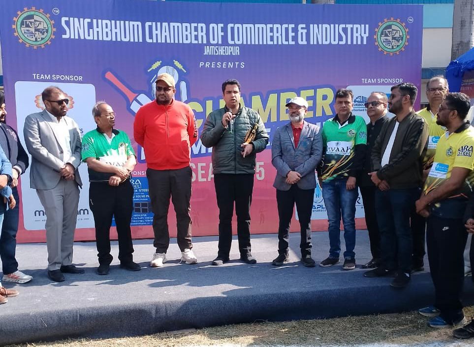 Jamshedpur: सिंहभूम चैम्बर ऑफ कॉमर्स एंड इंडस्ट्री द्वारा आयोजित पाँचवीं चैम्बर प्रीमियर लीग क्रिकेट टूर्नामेंट का भव्य उद्घाटन मंगलवार प्रातः 10:00 बजे सम्पन्न हुआ। उद्घाटन समारोह के मुख्य अतिथि कुमार शिवाशीष, आईपीएस (सिटी एसपी, जमशेदपुर) एवं विशिष्ट अतिथि सौरव तिवारी, सचिव – झारखंड राज्य क्रिकेट संघ (जेएससीए) उपस्थित रहे।
