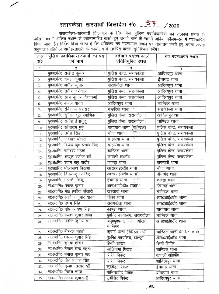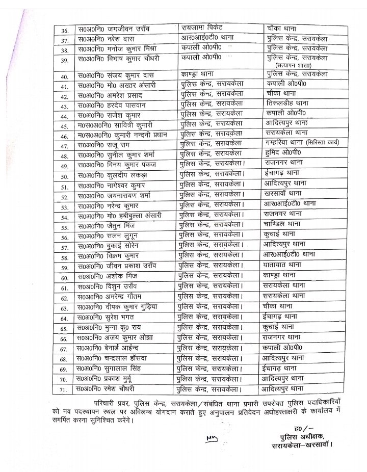 Seraikela News: सरायकेला पुलिस में बड़ा प्रशासनिक फेरबदल, 71 पुलिसकर्मियों का तबादला