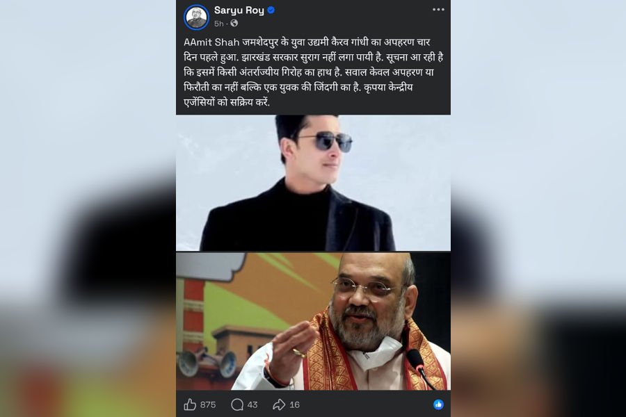 जमशेदपुर पश्चिम के विधायक सरयू राय ने इस मामले को लेकर केंद्रीय गृह मंत्री अमित शाह से सीधे हस्तक्षेप की अपील की है. उन्होंने सोशल मीडिया पोस्ट के माध्यम से कहा है कि कैरव गांधी का अपहरण केवल फिरौती या आपराधिक घटना भर नहीं है, बल्कि यह एक युवक की जिंदगी से जुड़ा गंभीर सवाल है.