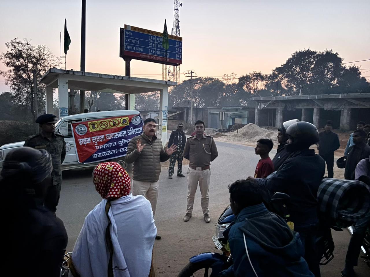 Seraikela News: सरायकेला खरसावां जिले के तिरुलडीह थाना क्षेत्र में सड़क सुरक्षा को लेकर पुलिस ने जागरूकता अभियान चलाया. यह अभियान शहीद चौक के समीप चलाया गया, जिसका नेतृत्व यातायात थाना प्रभारी राजू कुमार और तिरुलडीह थाना प्रभारी कौशल कुमार ने किया. यह मामला किसी अपराध या गिरफ्तारी से जुड़ा नहीं है, बल्कि आम लोगों को सुरक्षित यातायात के प्रति जागरूक करने की पहल है.