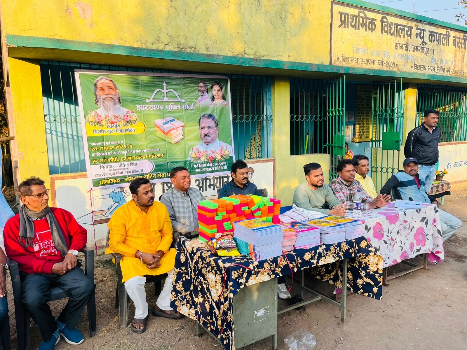 Jamshedpur: रामदास सोरेन सेवा फाउंडेशन के तत्वावधान में “हर घर कॉपी, हर हाथ कलम” अभियान के अंतर्गत सोनारी न्यू कपाली बस्ती स्थित प्राथमिक विद्यालय में बच्चों के बीच कॉपी एवं कलम का वितरण किया गया। कार्यक्रम का आयोजन विद्या की देवी माँ सरस्वती की पूजा एवं महान स्वतंत्रता सेनानी नेताजी सुभाष चंद्र बोस की जयंती के अवसर पर किया गया।
