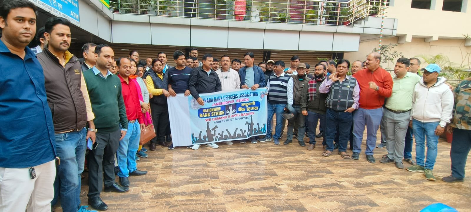 बिष्टुपुर टी टावर स्थित केनरा बैंक के क्षेत्रीय कार्यालय (आरओ ऑफिस) के समक्ष केनरा बैंक के कर्मचारी, क्लर्क यूनियन एवं अधिकारी यूनियन के सदस्य बड़ी संख्या में एकत्र हुए और अपनी मांगों के समर्थन में प्रदर्शन किया।
