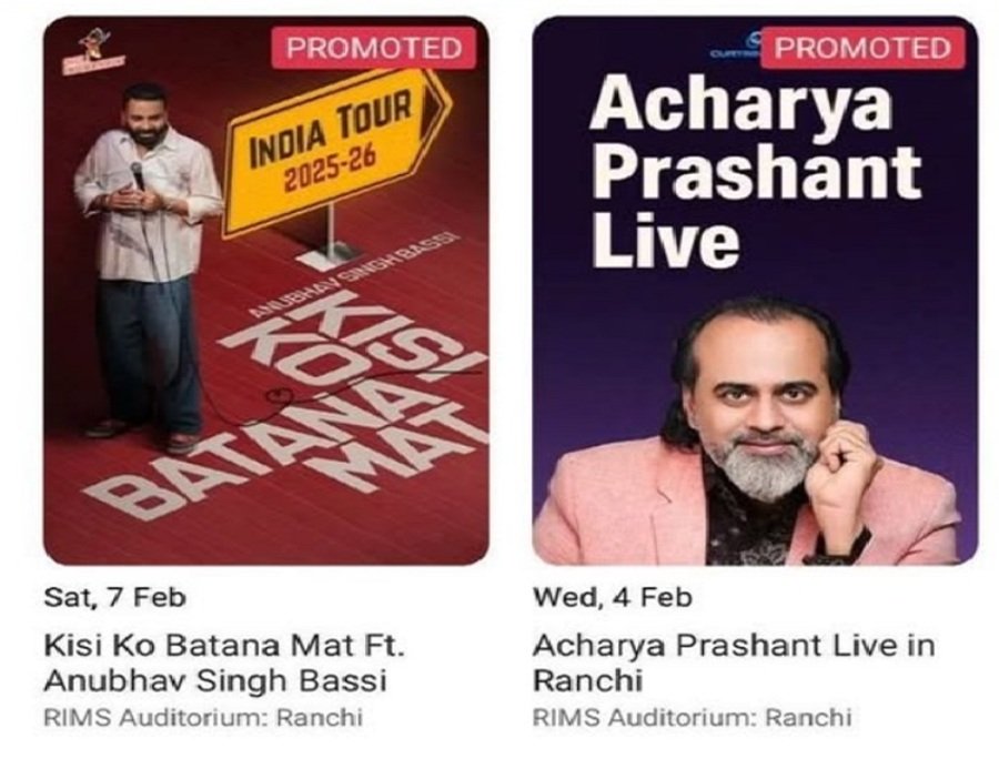 हाल के दिनों में सोशल मीडिया और Book My Show पोर्टल पर यह जानकारी प्रसारित हो रही थी कि 4 और 7 फरवरी 2026 को अभिनव सिंह बस्सी और आचार्य प्रशांत के कार्यक्रम RIMS ऑडिटोरियम में आयोजित होंगे. इस प्रचार के बाद बड़ी संख्या में लोगों के बीच यह खबर फैल गई और टिकटों की बिक्री भी शुरू हो गई.