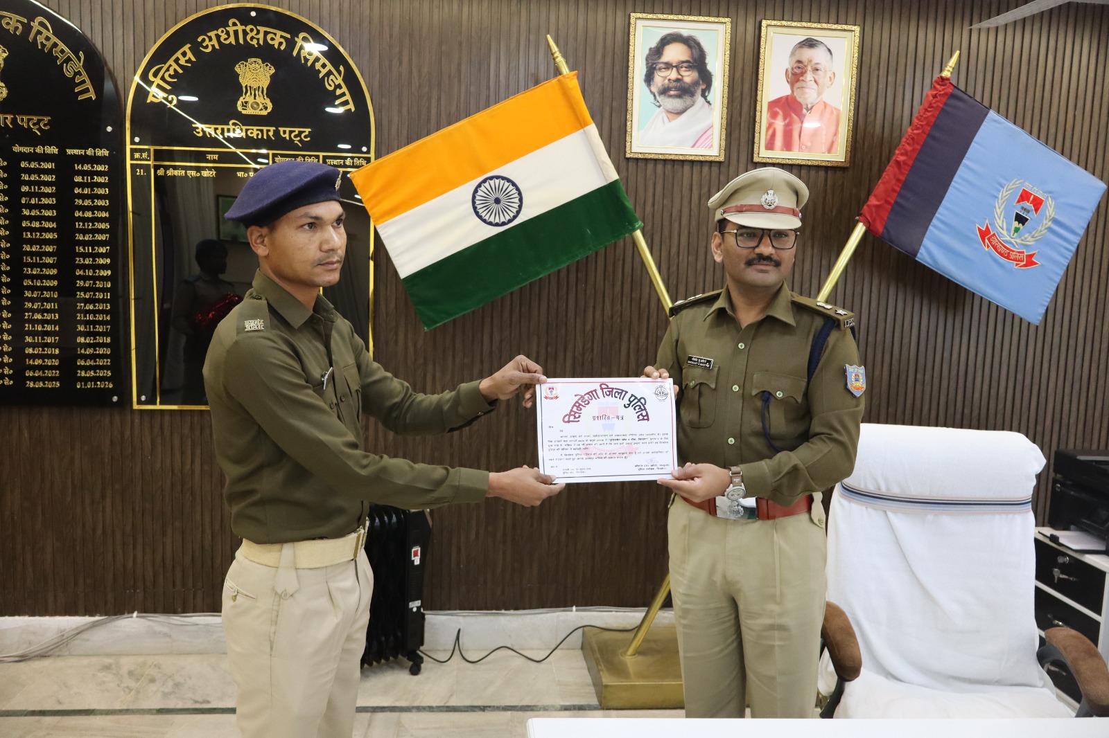 Simdega: पुलिस अधीक्षक महोदय द्वारा सिमडेगा जिला में उत्कृष्ट टर्नआउट, कर्तव्यपरायणता एवं सकारात्मक (नैतिक) सोच वाले पुलिस कर्मियों को प्रोत्साहित करने एवं उनका मनोबल बढ़ाने के उद्देश्य से “पुलिसमैन ऑफ द वीक: सिमडेगा पुलिस” पुरस्कार की शुरुआत की गई है।