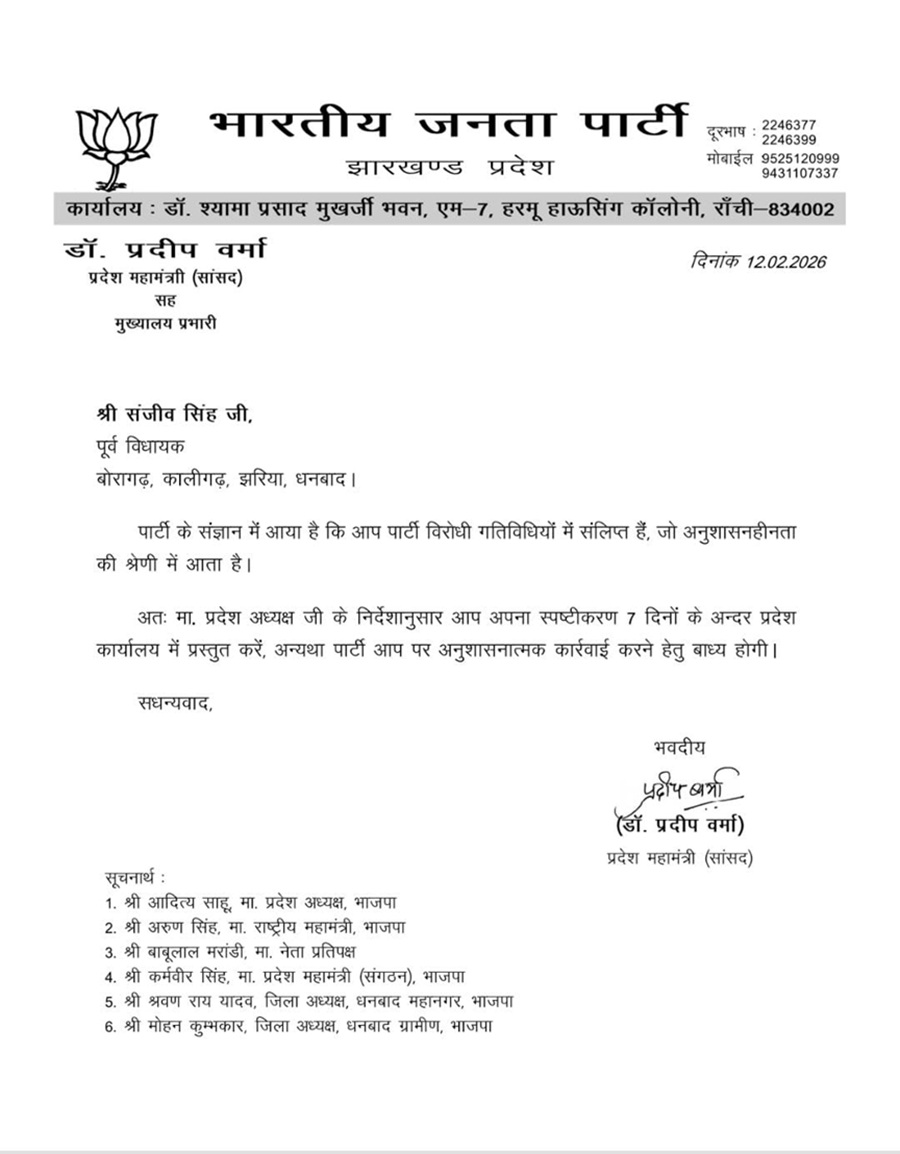 Jharkhand Politics: भाजपा नेता संजीव सिंह समेत 18 नेताओं को कारण बताओ नोटिस, सात दिनों में मांगा जवाब