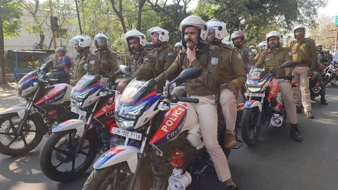 Dhanbad: होली पर्व को शांतिपूर्ण और सुरक्षित माहौल में संपन्न कराने के उद्देश्य से शनिवार को सीसीआर डीएसपी सुमित कुमार के नेतृत्व में सिटी हॉक्स पेट्रोलिंग बाइक द्वारा शहर के विभिन्न क्षेत्रों में व्यापक फ्लैग मार्च निकाला गया। पुलिस बल पूरी मुस्तैदी के साथ सड़कों पर उतरा और आमजन को सुरक्षा का भरोसा दिलाया।