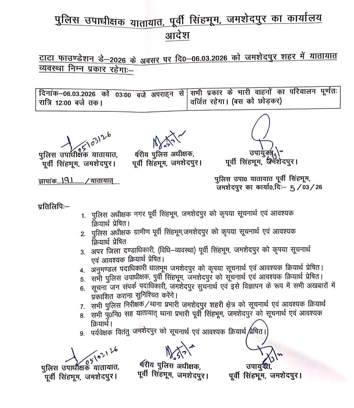 Jamshedpur NO Entry: जमशेदपुर में संस्थापक दिवस पर ट्रैफिक व्यवस्था में फिर बदलाव, 6 मार्च को भारी वाहनों की नो एंट्री