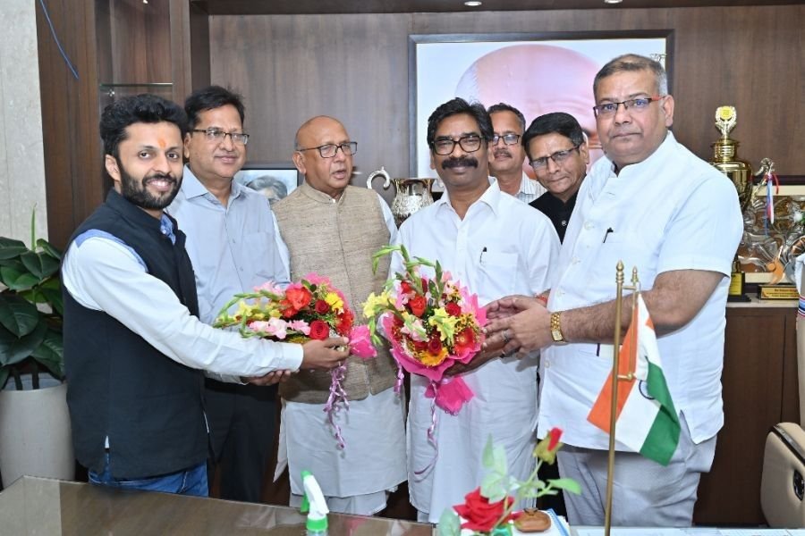 Jamshedpur News: पूर्वी सिंहभूम जिला मारवाड़ी सम्मेलन के प्रतिनिधिमंडल ने झारखंड विधानसभा परिसर में मुख्यमंत्री Hemant Soren से शिष्टाचार मुलाकात की. इस दौरान प्रतिनिधियों ने पुष्पगुच्छ भेंट कर मुख्यमंत्री का अभिनंदन किया और संगठन की गतिविधियों से अवगत कराया.