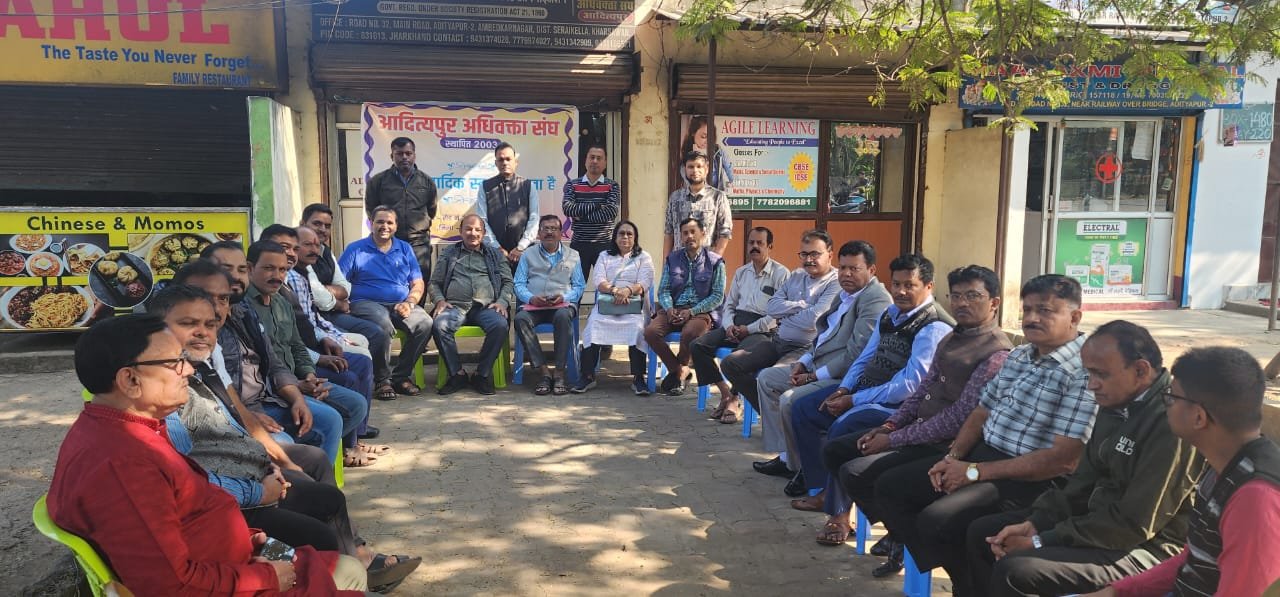 Adityapur: आदित्यपुर 2 रोड न. 32 स्थित कार्यलय में अधिवक्ता संघ की बैठक संपन्न हुई। बैठक की अध्यक्षता मुख्य संरक्षक अधिवक्ता ओम प्रकाश ने की। इस दौरान संघ की नई कार्यकारिणी का गठन किया गया, जिसका कार्यकाल दो वर्ष का होगा।