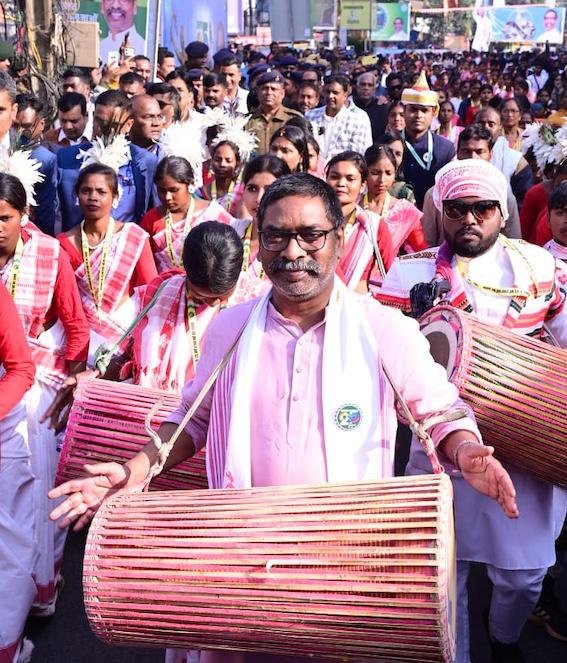 मुख्यमंत्री हेमंत सोरेन ने अल्बर्ट एक्का चौक पर पहुंचकर कलाकारों का उत्साह बढ़ाया। इसके बाद वे जुलूस के साथ अल्बर्ट एक्का चौक से शहीद चौक तक पैदल चले और पारंपरिक मांदर बजाकर कलाकारों के साथ ताल मिलाते नजर आए।
