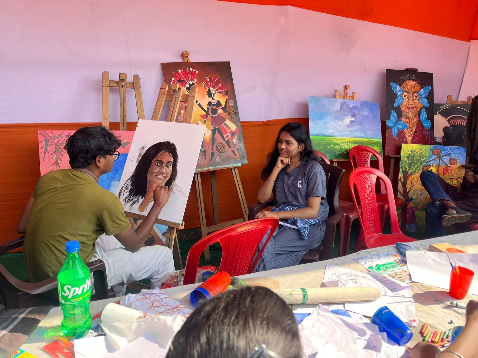 Jamshedpur: चतुर्थ बाल मेले में एक दिलचस्प और मन को छू लेने वाला दृश्य देखने को मिला. यहाँ मौजूद थे प्रतिभावान चित्रकार पैक्स सोय मुर्मू, जिनके सामने बैठी थीं कुमारी खुशी, जो टाटा स्टील में कार्यरत हैं. पैक्स खुशी का स्केच बना रहे थे और सबसे अद्भुत बात यह थी कि खुशी के चेहरे पर जो भाव थे, वही हू-ब-हू उनके कैनवास पर उतरते जा रहे थे.