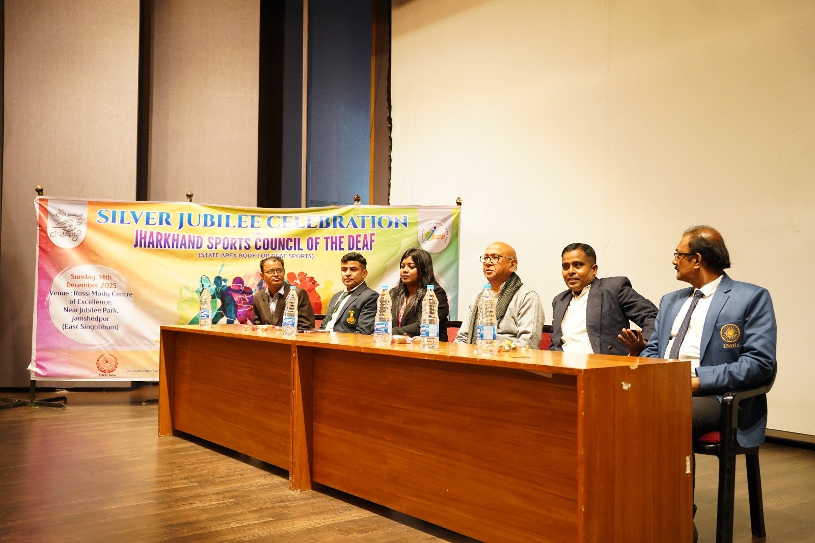 जमशेदपुर: झारखंड स्पोर्ट्स काउंसिल ऑफ़ द डेफ का 25वां सिल्वर जूबली समारोह रविवार को जमशेदपुर के हॉल रसी मोडी सेंटर ऑफ़ एक्सीलेंस ऑडिटोरियम में आयोजित किया गया। समारोह का उद्घाटन सुबह 9:30 बजे हुआ, जबकि पुरस्कार वितरण समारोह शाम 4:00 बजे संपन्न हुआ।