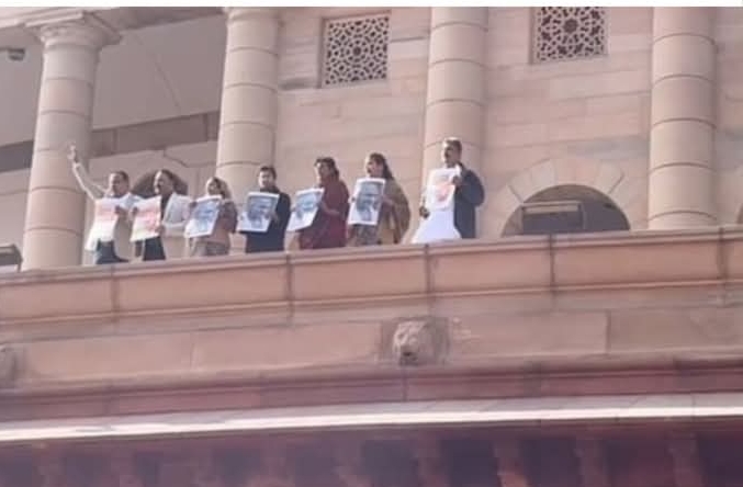 MANREGA: मनरेगा से गांधी नाम हटाने का विपक्ष का जबरदस्त विरोध, पुरानी संसद के पोर्च पर चढ़कर किया प्रदर्शन