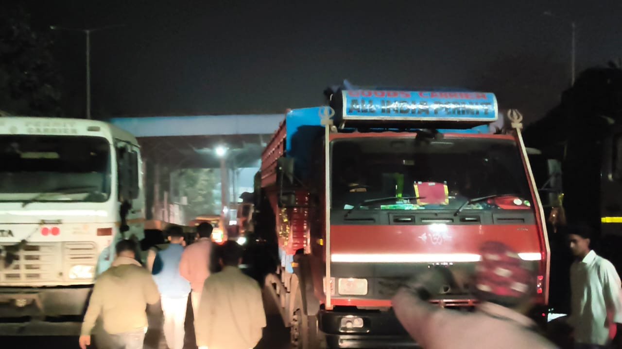 रोड जाम की वजह से लगी वाहनों की लंबी कतार