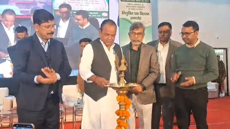 Ranchi: राज्य सरकार की ओर से चिकित्सा पदाधिकारी और विशेषज्ञ चिकित्सा पदाधिकारी के नियुक्ति पत्र वितरण समारोह का आयोजन रांची के नामकुम स्थित आईपीएच सभागार में किया गया। इस मौके पर स्वास्थ्य मंत्री डॉ. इरफान अंसारी, स्वास्थ्य विभाग के अपर मुख्य सचिव अजय कुमार सिंह, राष्ट्रीय स्वास्थ्य मिशन के अभियान निदेशक शशि प्रकाश झा समेत कई गणमान्य लोग उपस्थित थे। नव नियुक्त डॉक्टर भी समारोह में शामिल हुए।