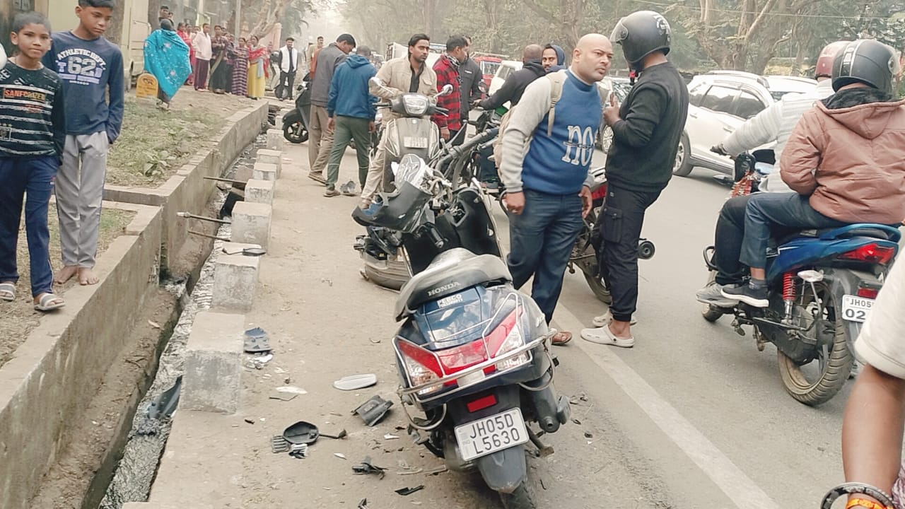 Sakchi: जमशेदपुर लौहनगरी के इलाके साकची थाना अंतर्गत पुराना कोर्ट परिसर के समीप शनिवार दोपहर एक भीषण सड़क दुर्घटना हुई। दोपहर करीब 2:30 बजे एक तेज रफ्तार अनियंत्रित कार ने स्कूटी संख्या JH05DL-5630 को इतनी जोरदार टक्कर मारी कि स्कूटी के परखच्चे उड़ गए। इस हादसे में स्कूटी सवार युवक गंभीर रूप से घायल हो गया।