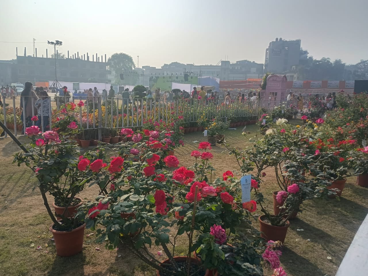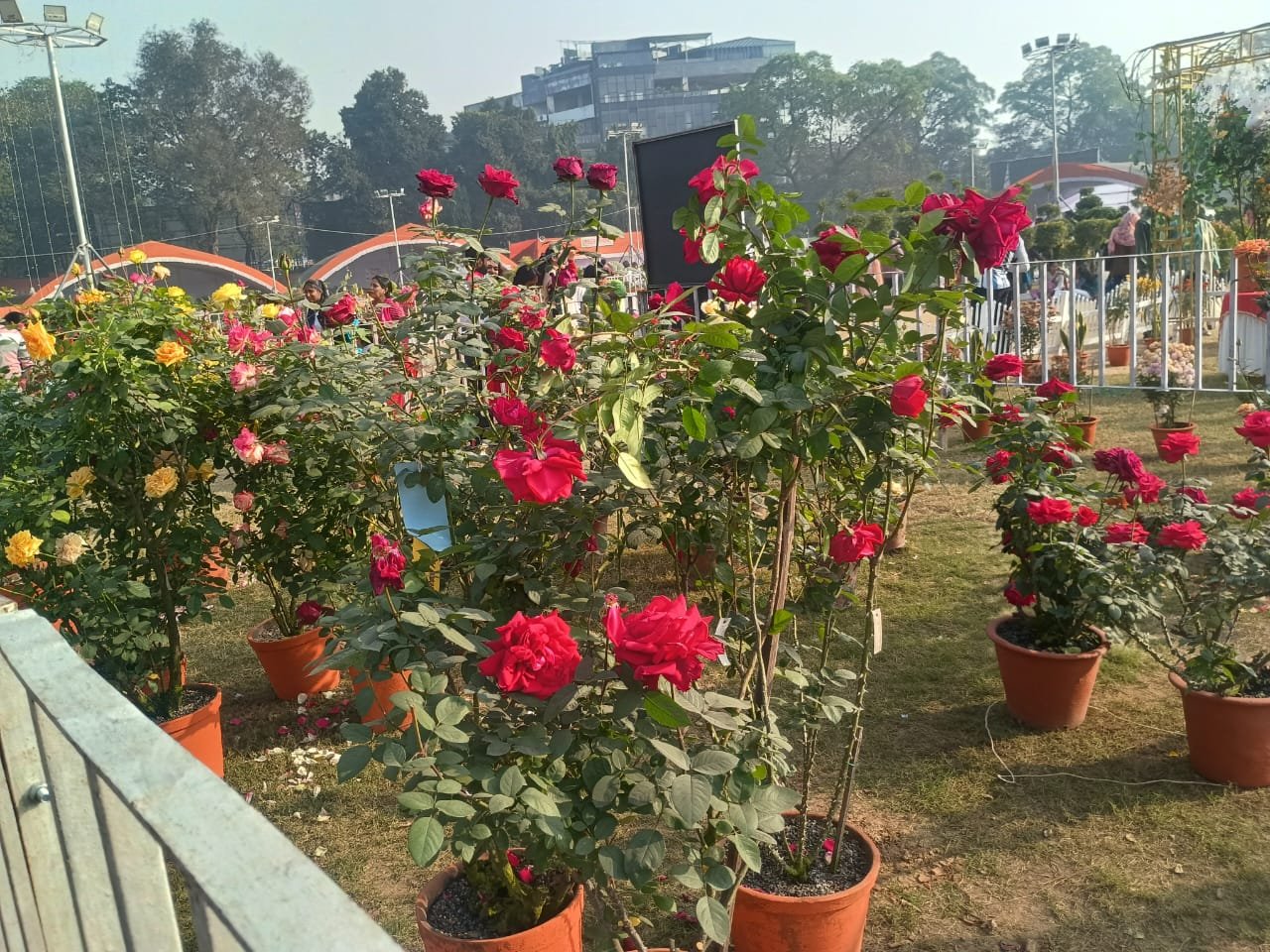 फ्लावर शो में सबसे ज्यादा ध्यान गुलाब के पौधे खींच रहे हैं. मैदान के बड़े हिस्से में फैली लाल गुलाब की झाड़ियों पर खिले बड़े बड़े फूल गहरे लाल रंग में चमक रहे हैं. इनकी मखमली पंखुड़ियां और हल्की सुगंध माहौल को खास बना रही हैं. इसके साथ ही गुलाबी, पीले और सफेद गुलाब अलग अलग गमलों में सजाए गए हैं. कई पौधों पर नई कलियां भी नजर आ रही हैं, जो आने वाले दिनों में और रंग बिखेरने का संकेत दे रही हैं.