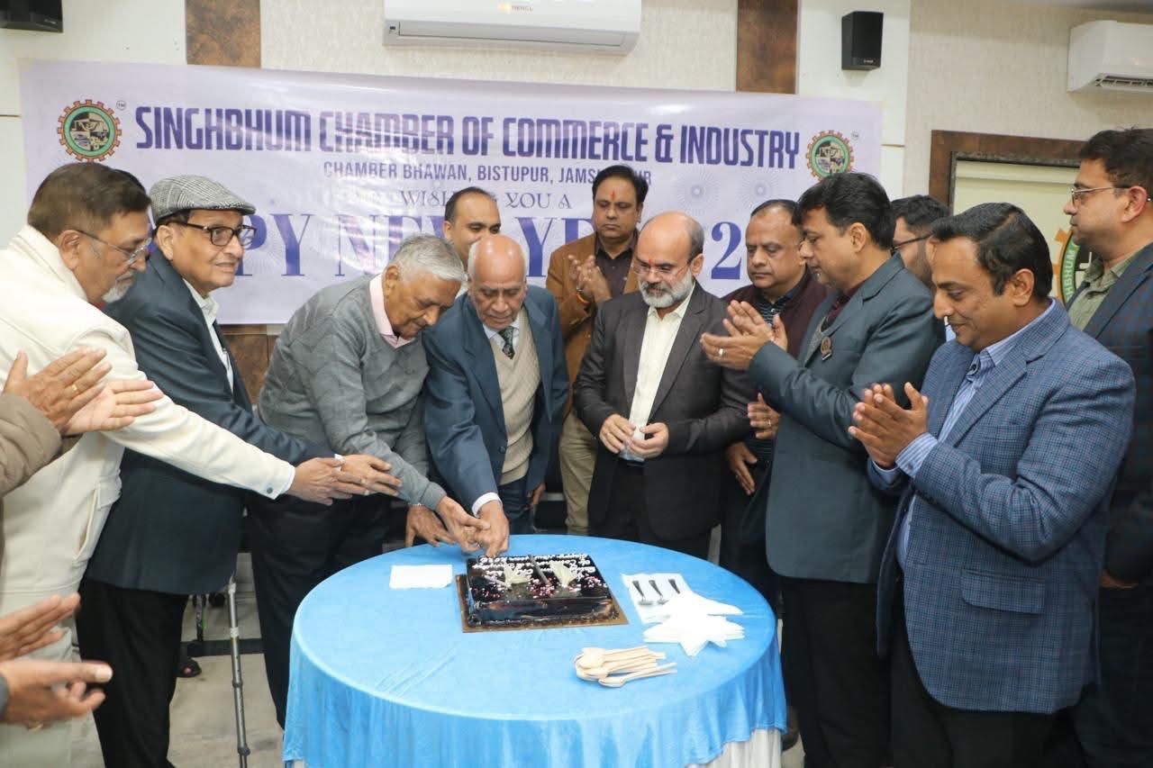 Jamshedpur: सिंहभूम चैम्बर ऑफ कॉमर्स एंड इंडस्ट्री की ओर से नववर्ष के उपलक्ष्य में आज चैम्बर सभागार में केक कटिंग समारोह का आयोजन किया गया। कार्यक्रम की शुरुआत पारंपरिक रूप से दीप प्रज्वलन के साथ की गई, जिसके बाद सदस्यों ने एक-दूसरे को नववर्ष की शुभकामनाएं दीं।