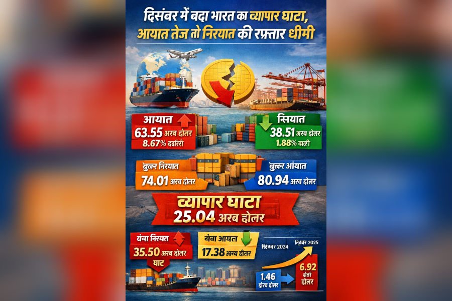 आंकड़ों के अनुसार, दिसंबर 2025 में देश का वस्तु निर्यात मामूली बढ़त के साथ 1.88 प्रतिशत बढ़कर 38.51 अरब डॉलर पर पहुंच गया. वहीं, इसी अवधि में वस्तु आयात में तेज उछाल देखने को मिला और यह 8.67 प्रतिशत बढ़कर 63.55 अरब डॉलर हो गया.
