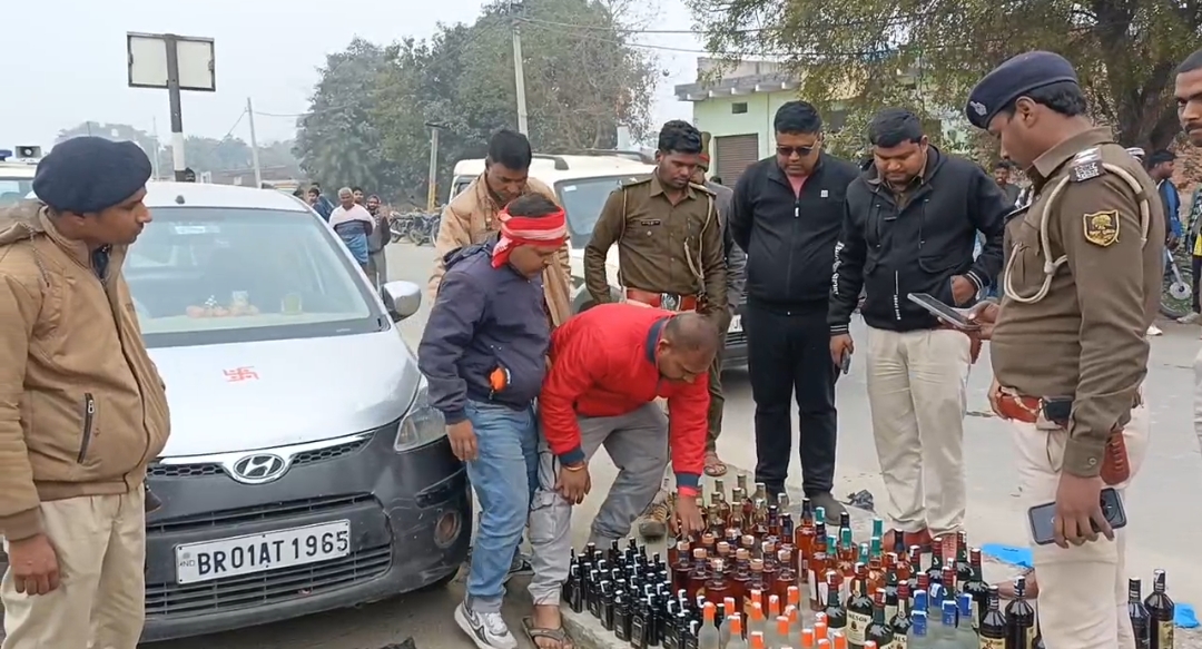 Bihar Illegal Liquor: कैमूर पुलिस की बड़ी कार्रवाई, NH-19 पर लग्जरी कार से शराब बरामद, पटना के दो तस्कर गिरफ्तार