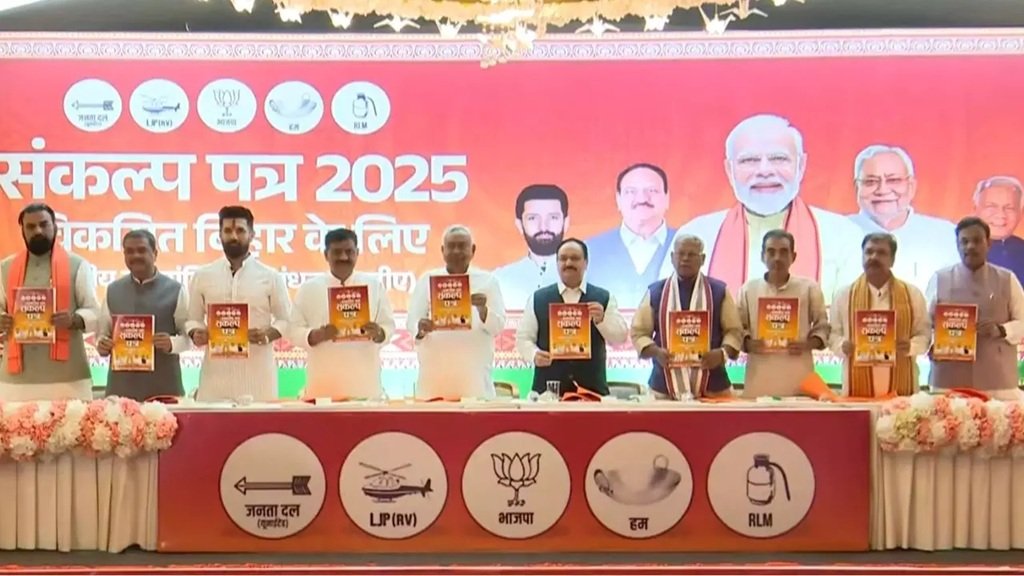 Bihar Elections: एनडीए का बिहार चुनाव के लिए घोषणा पत्र जारी, एक करोड़ नौकरी और महिलाओं को दो लाख सहायता का वादा