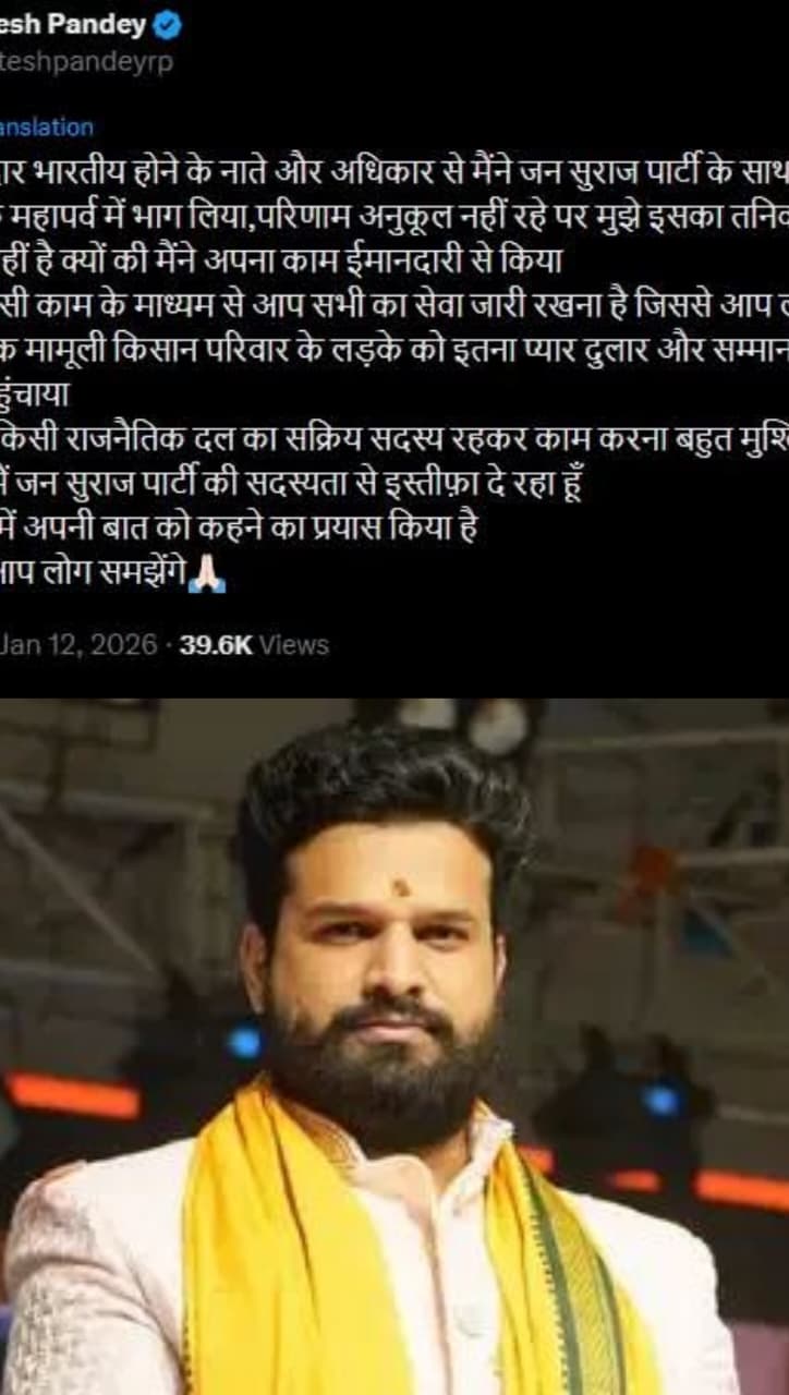 Bhojpuri Singer Ritesh Pandey Resigns From Jan Suraj Party: भोजपुरी सिंगर रितेश पांडे ने जन सुराज पार्टी से दिया इस्तीफा, राजनीति से सन्यास का संकेत