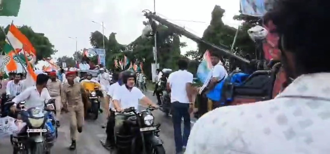 Rahul Gandhi Driving Motorcycle: राहुल गांधी दिखे मोटरसाइकिल चलाते, वोटर यात्रा में जोश से भरे समर्थक