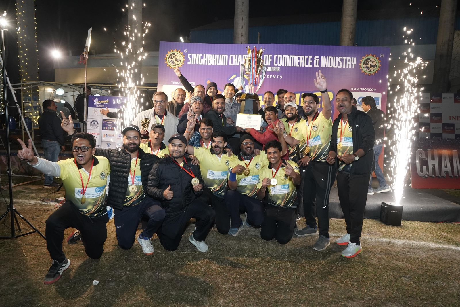 Jamshedpur: सिंहभूम चैम्बर ऑफ कॉमर्स एंड इंडस्ट्री द्वारा आयोजित दो दिवसीय पांचवें चैम्बर प्रीमियर लीग का भव्य समापन बुधवार देर रात ट्यूब मेकर्स क्लब ग्राउंड (Tube Makers Club Ground) में हुआ। इस टूर्नामेंट के रोमांचक फाइनल मुकाबले में पी.एस.टी.-11 ने एकतरफा प्रदर्शन करते हुए पीआरडब्ल्यू-11 को 134 रनों के विशाल अंतर से शिकस्त देकर खिताब अपने नाम किया।