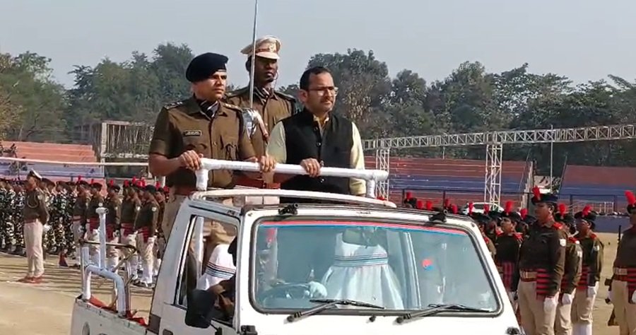 Seraikela News: सरायकेला जिला मुख्यालय स्थित भगवान बिरसा मुंडा मैदान में 77वें गणतंत्र दिवस समारोह की तैयारियों के तहत शनिवार को फुल ड्रेस रिहर्सल आयोजित की गई. अंतिम पूर्वाभ्यास के दौरान उपायुक्त नीतीश कुमार सिंह और पुलिस अधीक्षक मुकेश कुमार लुणायत ने परेड का निरीक्षण किया और सलामी ली.