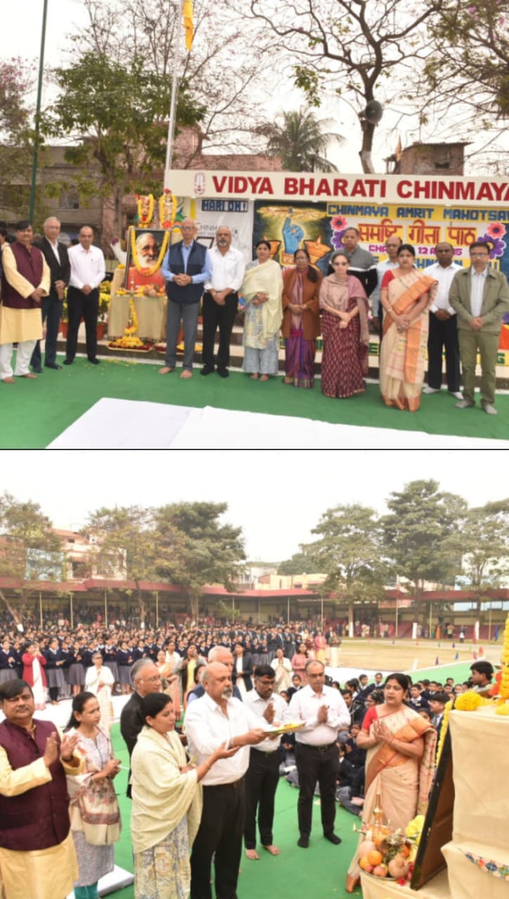 इस अवसर पर चिन्मय मिशन के अध्यक्ष श्री बी. सुरेन्द्रनाथ ने अपने संबोधन में कहा कि गीता केवल एक धार्मिक ग्रंथ नहीं, बल्कि जीवन की हर चुनौती का समाधान है। कार्यक्रम में विशिष्ट अतिथि के रूप में शामिल हुए, अजितेश मोंगा प्लांट मैनेजर और डायरेक्टर, टाटा कमिन्स संजय सिंहा अध्यक्ष, विद्यालय प्रबंध समिति मानस मिश्रा पूर्व अध्यक्ष, विद्यालय प्रबंध समिति विष्णु चंद्र दीक्षित सचिव, विद्यालय प्रबंध समिति मीना विल्खू प्राचार्या इसके अलावा कई पूर्व शिक्षक, अभिभावक और चिन्मय मिशन के गणमान्य सदस्य इस पावन बेला के साक्षी बने।