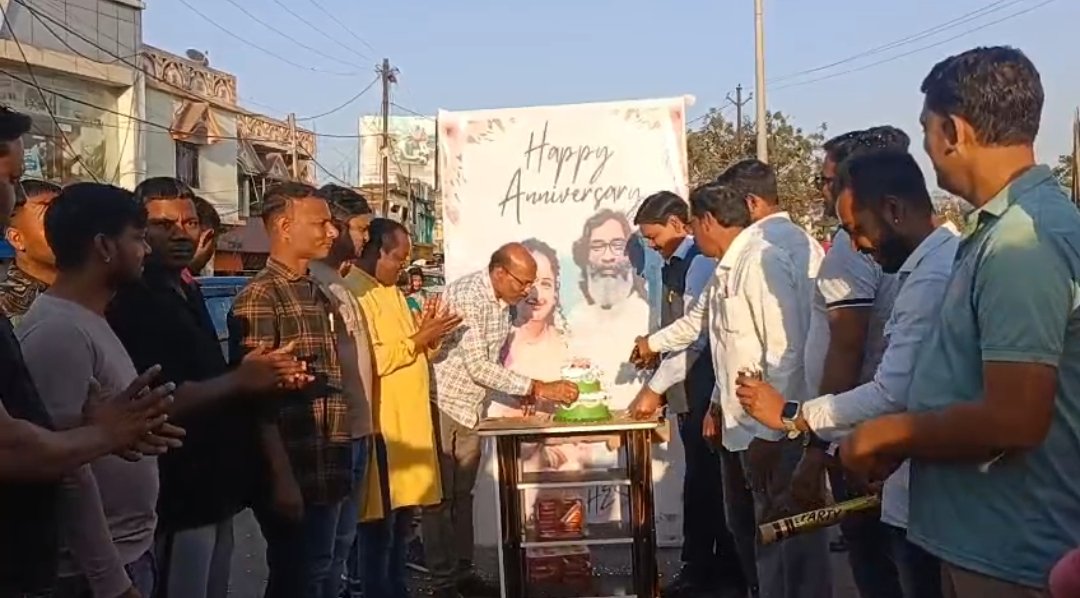 Saraikela News: सरायकेला में गूंजा हेमंत-कल्पना का नाम, मुख्यमंत्री की शादी की सालगिरह पर झामुमो ने काटा 10 पाउंड का केक