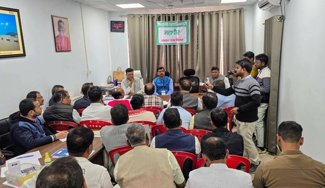 Dhanbad: धनबाद नगर निगम के महापौर पद के चुनाव को निष्पक्ष, पारदर्शी और शांतिपूर्ण ढंग से संपन्न कराने के उद्देश्य से धनबाद समाहरणालय के कक्ष संख्या 4 में सभी महापौर पद के अभ्यर्थियों के साथ एक महत्वपूर्ण बैठक आयोजित की गई। बैठक की अध्यक्षता निर्वाची पदाधिकारी -सह-अपर समाहर्ता विनोद कुमार ने की। इस अवसर पर नगरपालिका निर्वाचन के सामान्य प्रेक्षक रोबिन टोप्पो एवं व्यय प्रेक्षक भी विशेष रूप से उपस्थित थे।