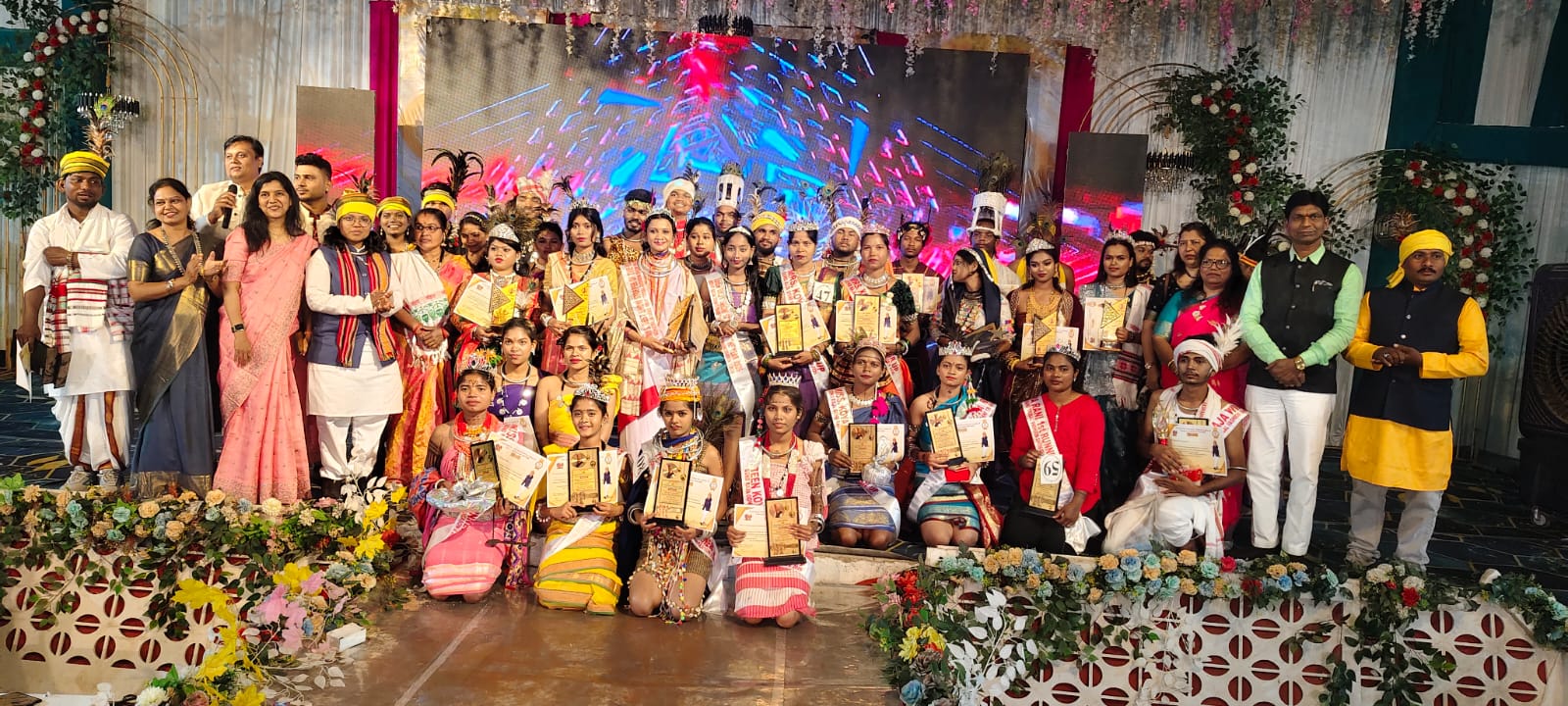 कार्यक्रम में पारंपरिक गोंड वेशभूषा, आकर्षक आभूषणों और आधुनिक फ्यूजन परिधानों का भव्य प्रदर्शन किया गया।