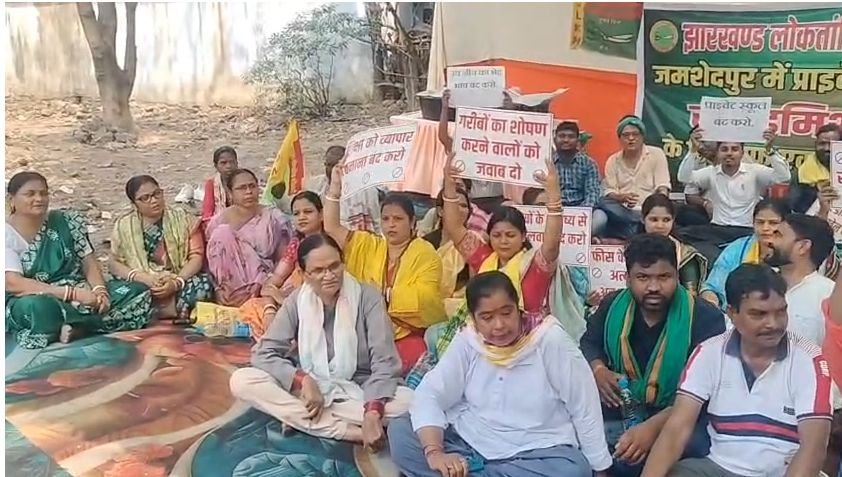 Jamshedpur News : री-एडमिशन शुल्क के खिलाफ उपायुक्त कार्यालय पर धरना, निजी स्कूलों पर मनमानी का आरोप