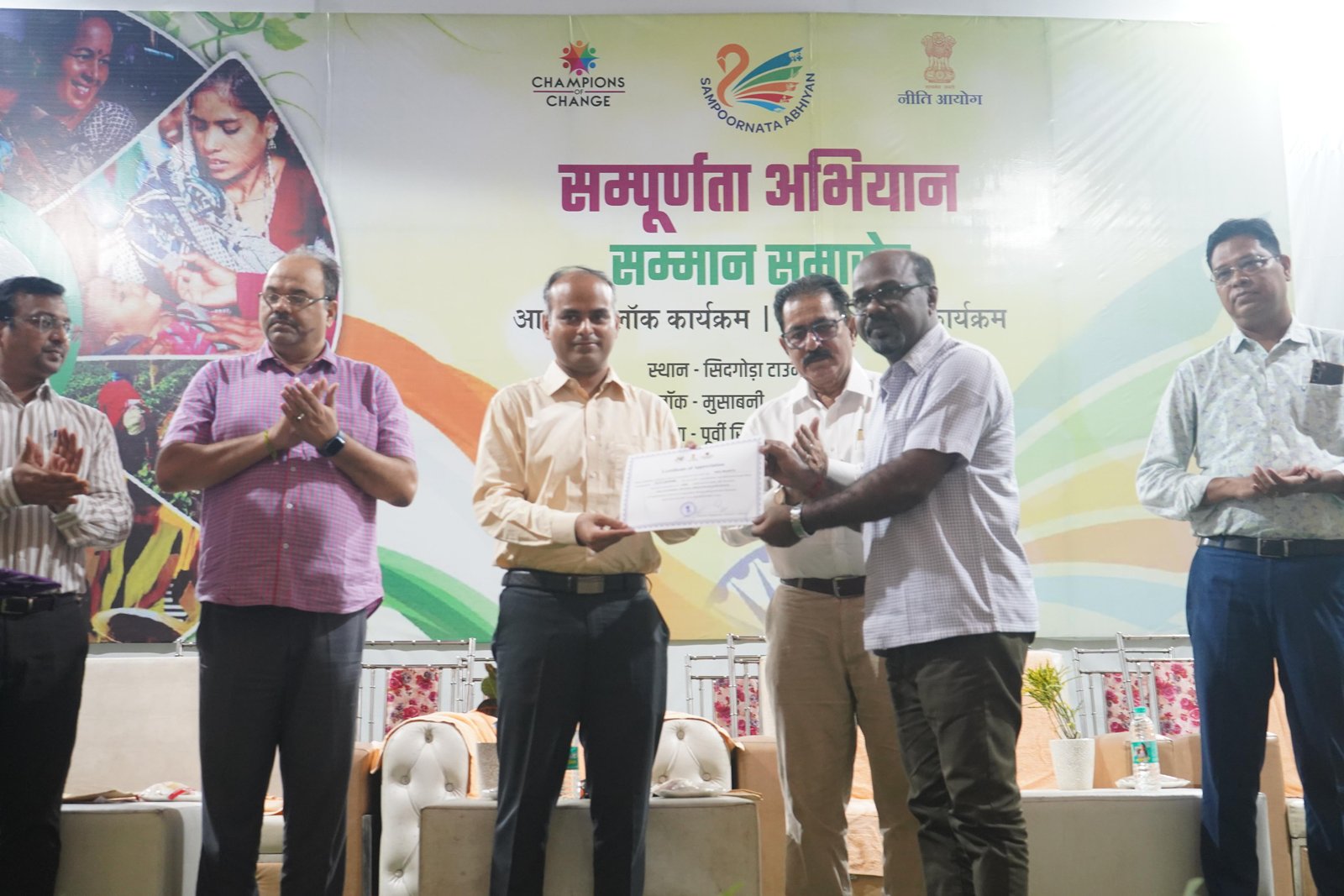 इस मौके पर उपायुक्त द्वारा बीडीओ अदिति गुप्ता को नीति आयोग द्वारा मुसाबनी प्रखंड को सिल्वर मेडल प्राप्त होने पर सम्मानित किया गया। साथ ही जिला के इंडिकेटर में बेहतर कार्य प्रदर्शन के लिए बीडीओ बहरागोड़ा केशव भारती, बीडीओ जमशेदपुर सदर सुमित प्रकाश, बीडीओ बोड़ाम किकू महतो, बीडीओ घाटशिला यूनिका शर्मा, पिरामल के फेलोज अभिषेक झा, रिया कुमारी, शशि भूषण प्रसाद, वंदना मौर्य को प्रशस्ति पत्र दिया गया। साथ ही, पूरे जिला से कुल 110 अन्य फ्रंटलाइन वर्कर एवं कर्मचारियों को भी इस उपलब्धि में परस्पर भागीदारी के लिए प्रशस्ति पत्र देकर सम्मानित किया गया।