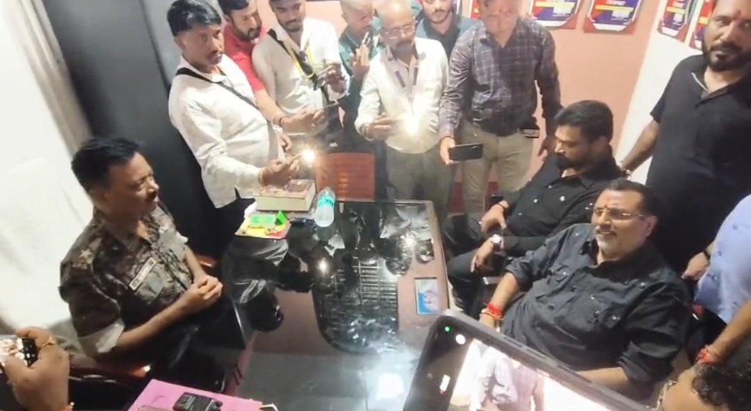निशिकांत दुबे एयरपोर्ट से अपने समर्थकों संग सीधा बाबा मंदिर थाना पहुंचे जहां थाना प्रभारी ने अभी जांच जारी रहने की बात कह उनसे वापस जाने का अनुरोध किया, थाना परिसर से बाहर निकलकर एक बार फिर सांसद बेहद गुस्से में नजर आए।