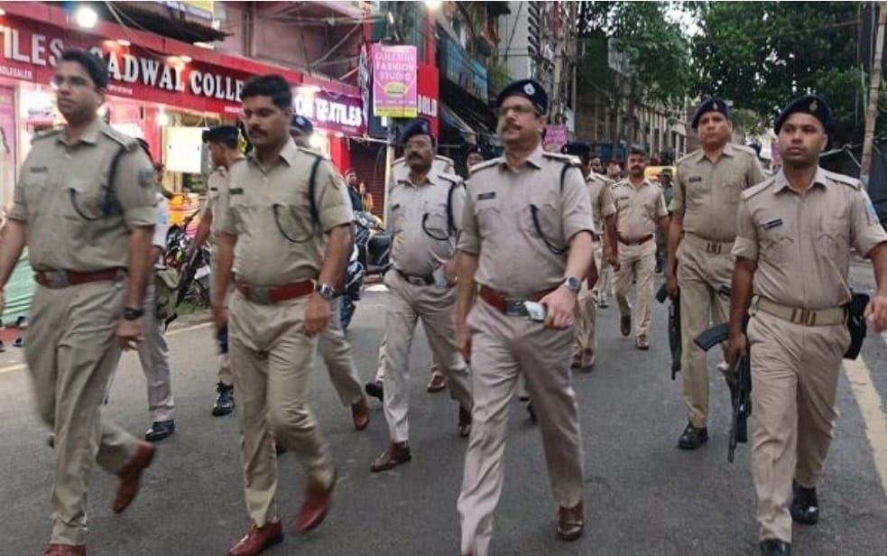 Jamshedpur Police Flag March: स्वतंत्रता दिवस की पूर्व संध्या पर जुगसलाई में पुलिस का फ्लैग मार्च, असामाजिक तत्वों को चेतावनी