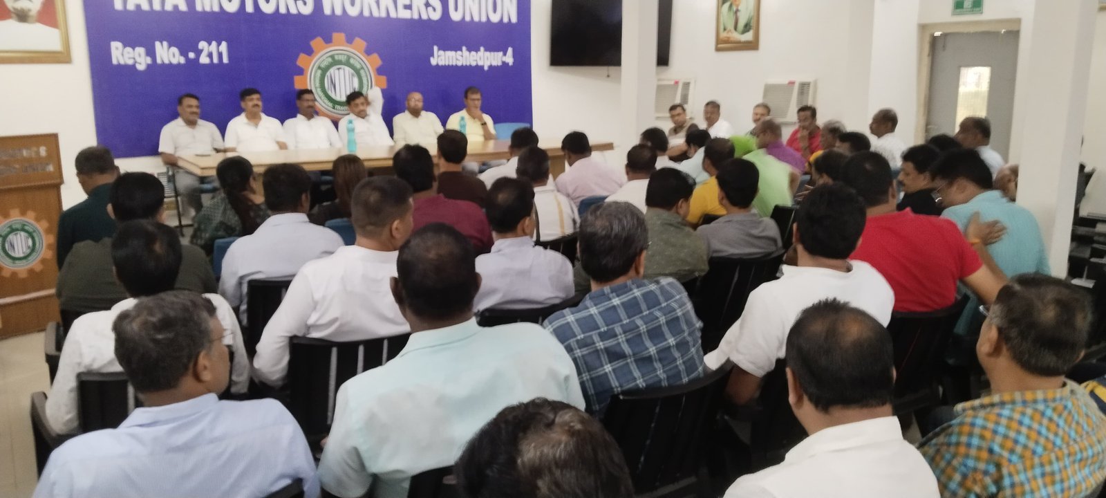 Jamshedpur Tata Motors Workers Union: जमशेदपुर में पूर्व निर्धारित कार्यक्रम के तहत बुधवार को टाटा मोटर्स वर्कर्स यूनियन की कमेटी मीटिंग पूर्वाह्न 11 बजे यूनियन के गोपेश्वर हॉल में आयोजित की गई। बैठक की अध्यक्षता यूनियन के अध्यक्ष शशि भूषण प्रसाद ने किया। बैठक में विषय प्रवेश महामंत्री आरके सिंह ने कराया।