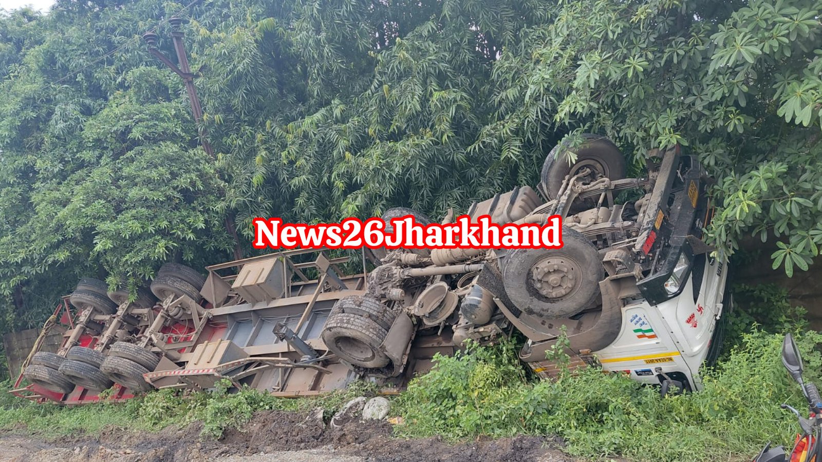 Gamharia trailer accident: गम्हरिया में मिट्टी धंसने से ट्रेलर पलटा,बड़ा हादसा टला, चालक और खलासी सुरक्षित