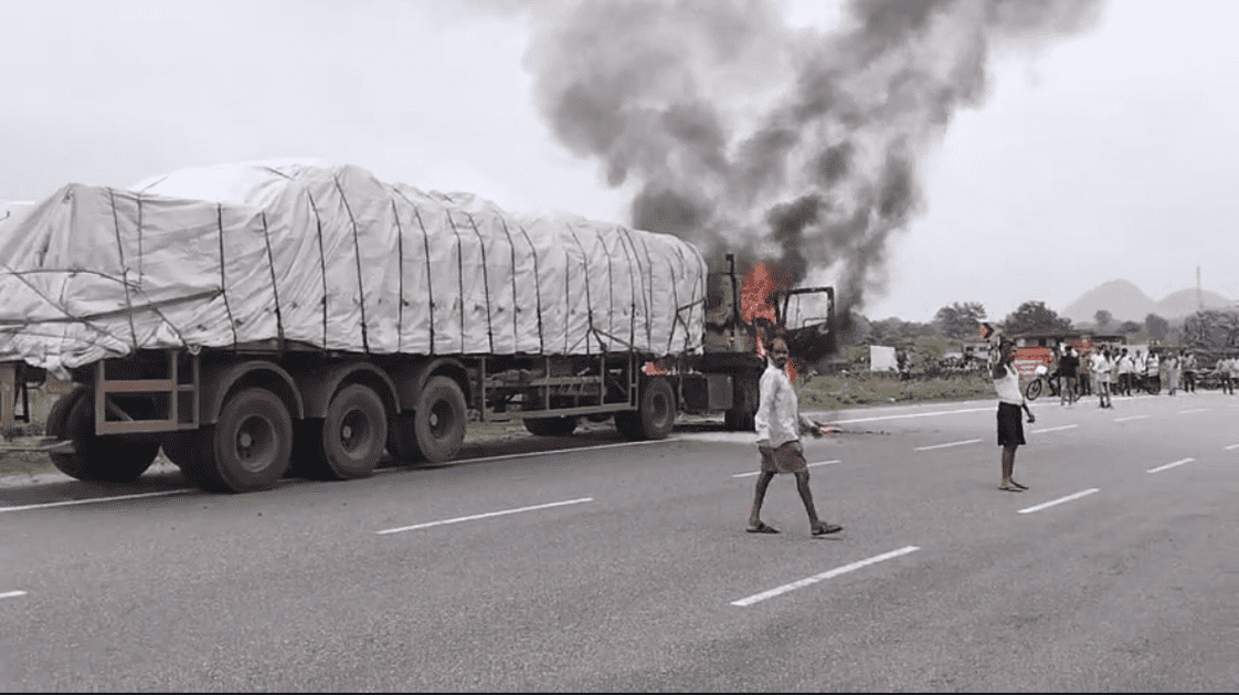 Fire Broke Out In A Truck In Giridih:गिरिडीह में चावल लदी ट्रक में लगी भीषण आग, ट्रक पूरी तरह से जलकर हुआ स्वाहा