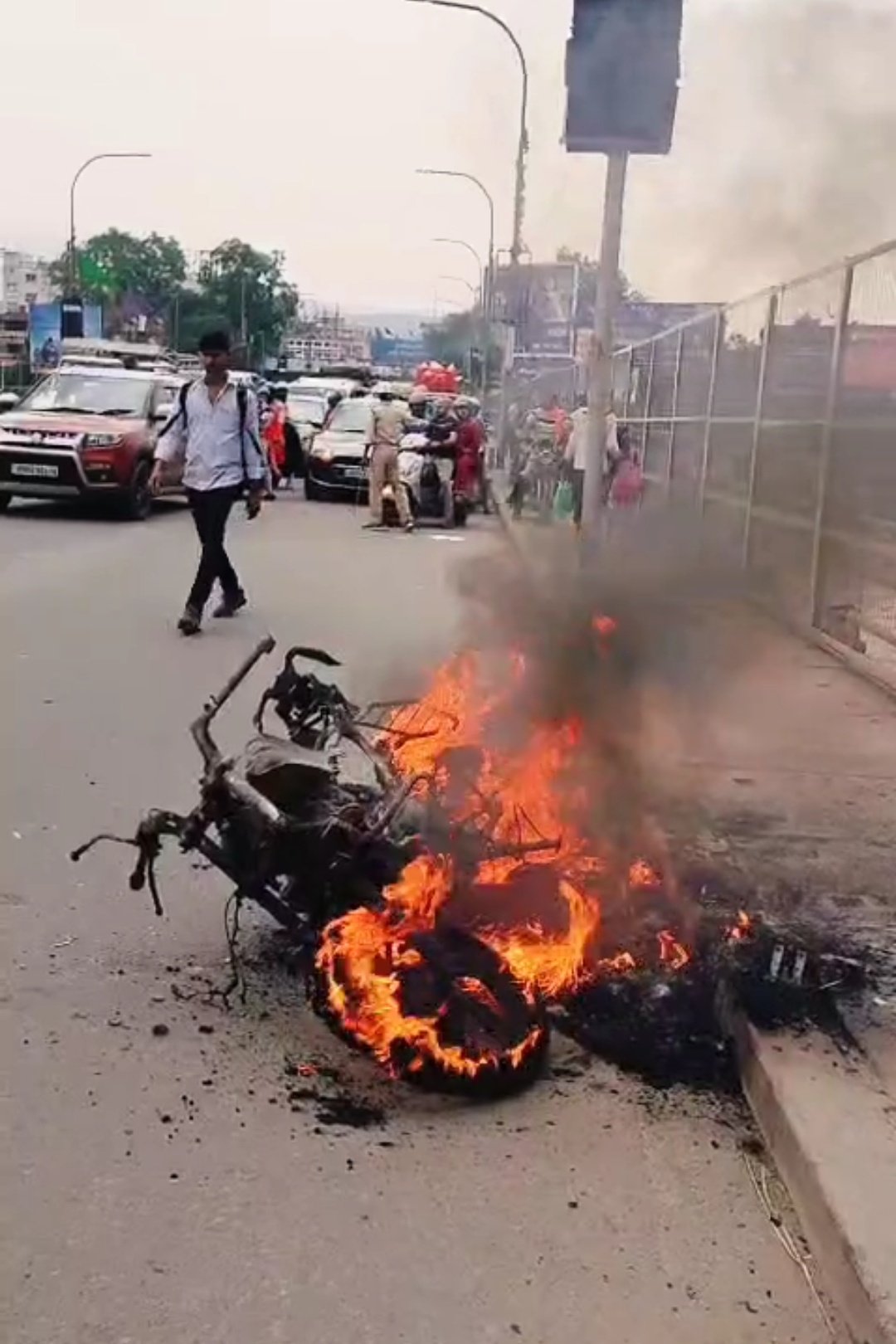 यह देखकर विवेक घबरा गए और आनन-फानन में पास ही लगे एक नल से पानी लेकर आग बुझाने की कोशिश करने लगे, लेकिन तब तक आग पूरी बाइक को अपनी चपेट में ले चुकी थी, आग की लपटें इतनी तेज थीं कि विवेक चाहकर भी कुछ नहीं कर पाए और उनकी आंखों के सामने ही उनकी बाइक जलकर राख हो गई।