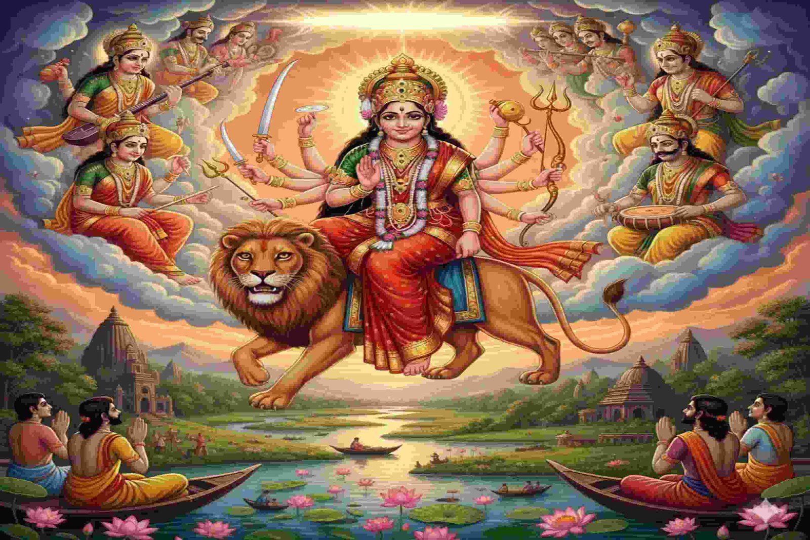 पौराणिक मान्यता के अनुसार, महिषासुर राक्षस को यह वरदान प्राप्त था कि कोई देवता या मनुष्य उसका वध नहीं कर पाएगा. वरदान के प्रभाव से उसने देवताओं पर आक्रमण कर दिया और स्वर्गलोक पर अधिकार कर लिया. देवताओं ने विष्णु और अन्य देवताओं के साथ मिलकर आदिशक्ति की आराधना की. इस आराधना से एक दिव्य तेज प्रकट हुआ, जिसने मां दुर्गा का रूप धारण किया.