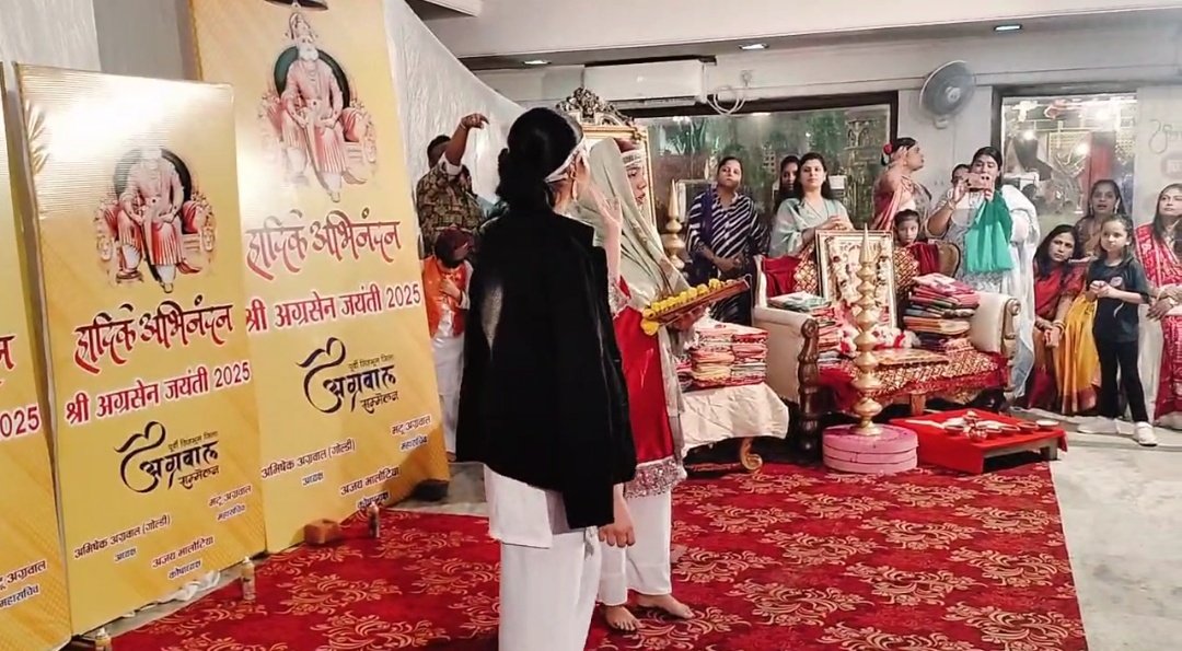 अग्रवाल समाज की महिलाओं ने कुलदेवी माता महालक्ष्मी का पूजन किया. उनके द्वारा माता को 108 साड़ी और कमल फूल अर्पित किए गए. पंडित पुरुषोत्तम शर्मा एवं विद्वान पंडितों द्वारा विधि विधान से माता का पूजन संपन्न करवाया गया. इस दौरान कलाकारों द्वारा महालक्ष्मी- अग्रसेन- माधवी की झांकी प्रस्तुत की गई।
