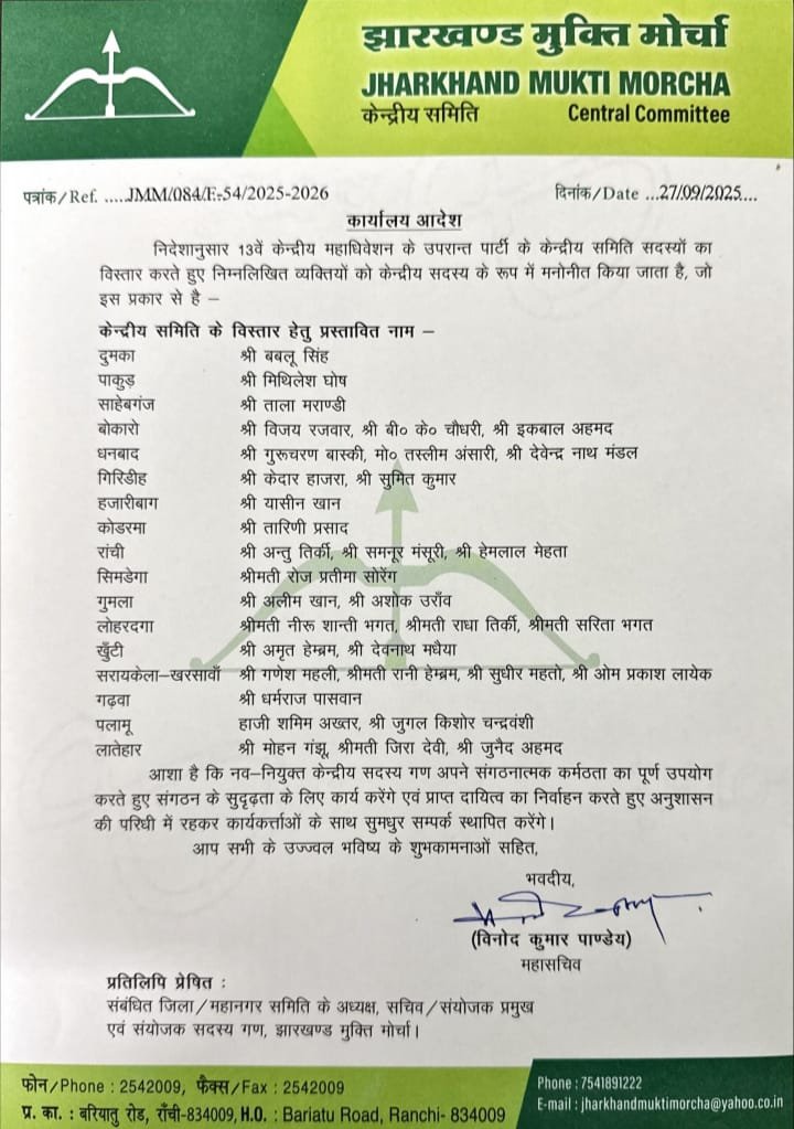 JMM 35 New Members: झामुमो ने किया केन्द्रीय समिति का विस्तार, 13वें केन्द्रीय महाधिवेशन के बाद 35 नए सदस्यों को किया शामिल