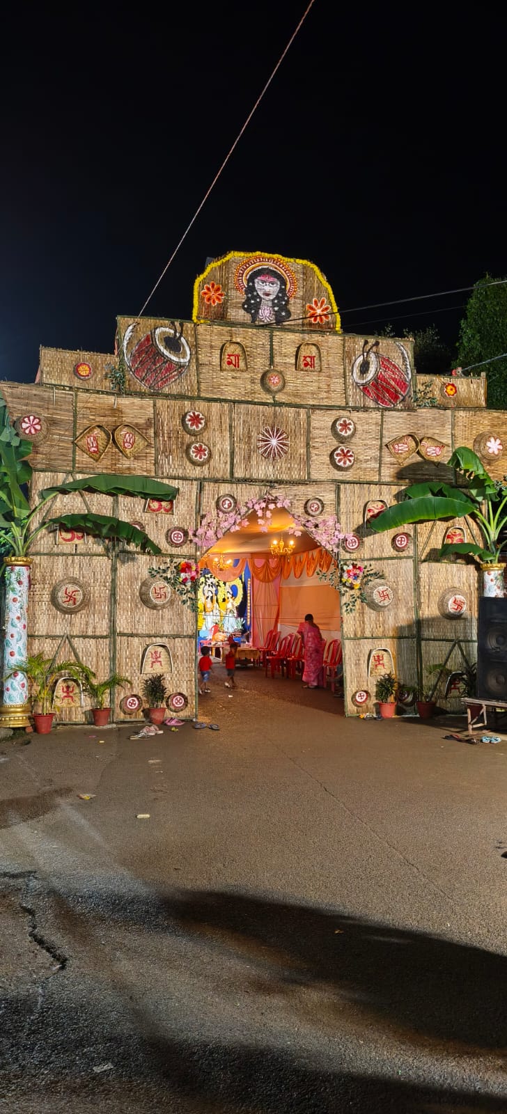 इस बार पूजा पंडाल चटाइयों से बनाया गया था, जो आकर्षक और मनमोहक दिखाई दे रहा था। पंडाल की तैयारी में छोटे-छोटे बच्चे भी दिन-रात लगे रहे।