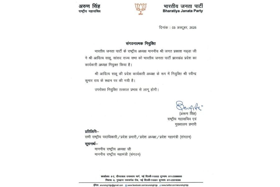 Jharkhand BJP: आदित्य साहू बने झारखंड भाजपा के कार्यकारी अध्यक्ष, रवीन्द्र राय की जगह मिली जिम्मेदारी