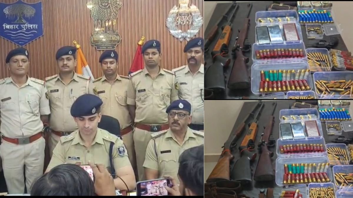 कारतूस (12 बोर, .315 बोर, 7.65 एमएम, .32 बोर), 5.07 लाख रुपये नकद और 3 मोबाइल व अन्य सामान शामिल है. गिरफ्तार दोनों के