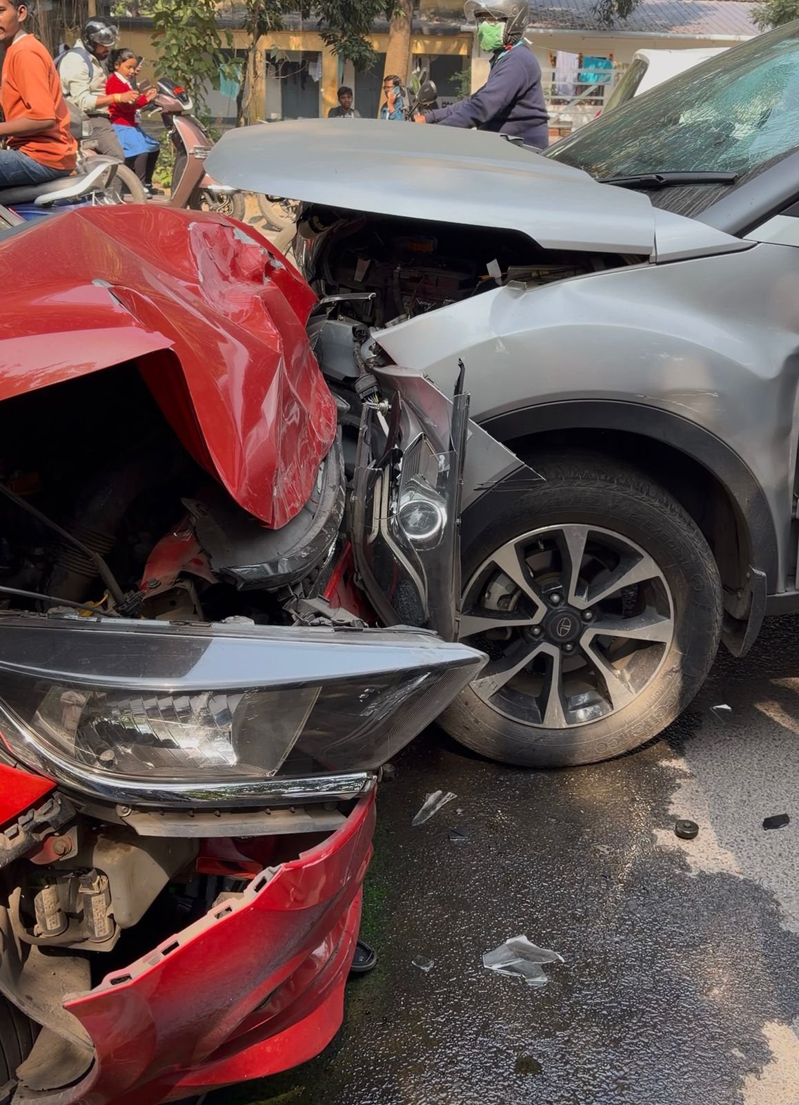 मिली जानकारी के अनुसार, दुर्घटनाग्रस्त वाहनों में से एक टाटा नेक्सा कार थी, जिसका संख्या JH05CX-1820 है। यह कार भुईयांडीह की ओर से आ रही थी। ठीक उसी समय, विपरीत दिशा से आ रही दूसरी कार, जिसका गाड़ी संख्या नंबर WB6T-6840 था,जिसने नेक्सा कार को सीधी टक्कर मार दी। टक्कर इतनी ज़ोरदार थी कि दोनों वाहनों को भारी नुकसान पहुंचा है।