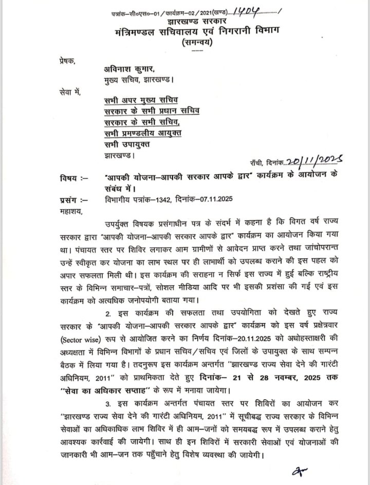 Saraikela News: 21 से 28 नवंबर तक चलेगा सेवा का अधिकार सप्ताह, पंचायत स्तर पर शिविरों के जरिए मिलेंगी सभी प्रमाणपत्र और सेवाएं